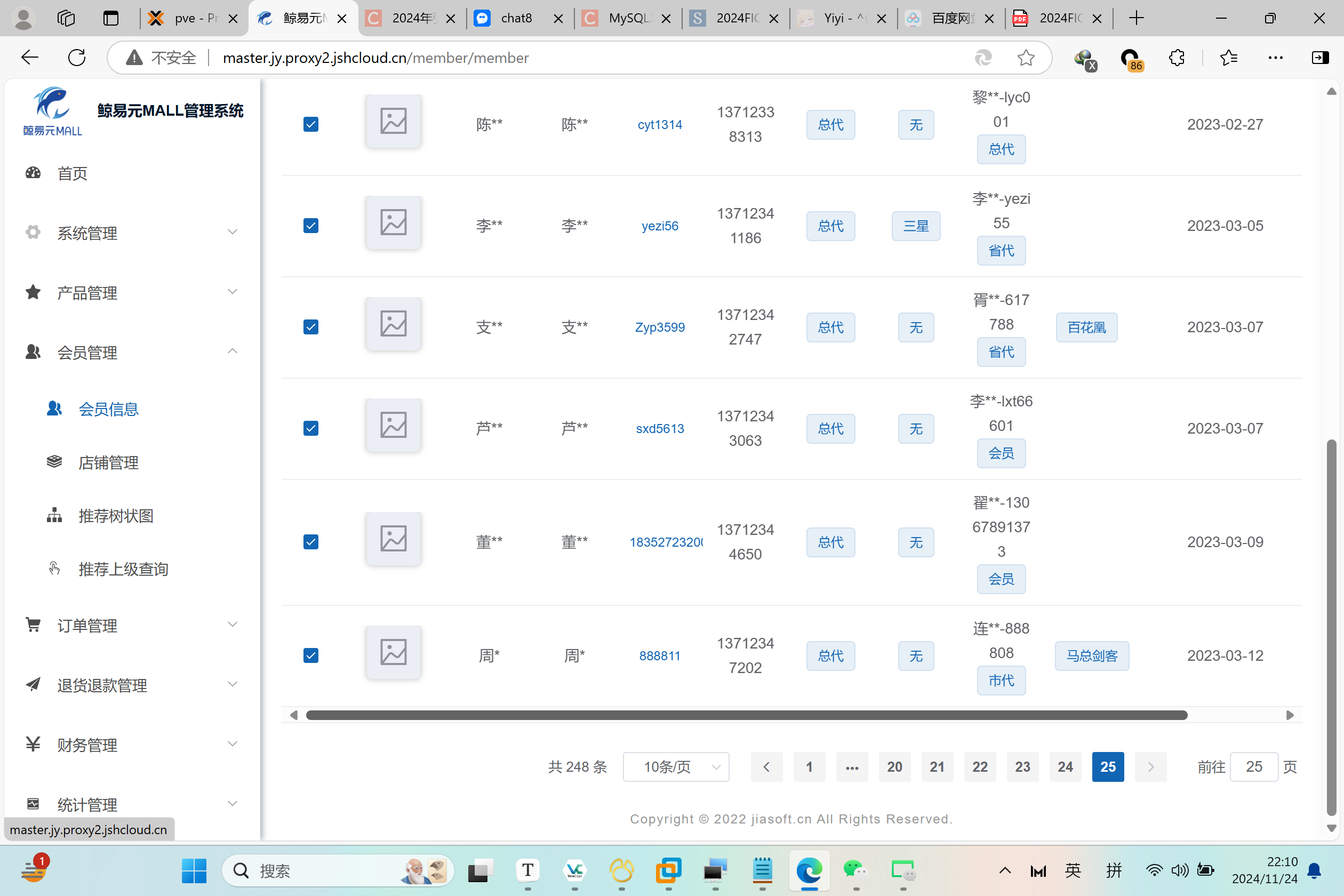 15、“鲸易元MALL管理系统”管理后台中,会员的数量为?【答案格式:123】