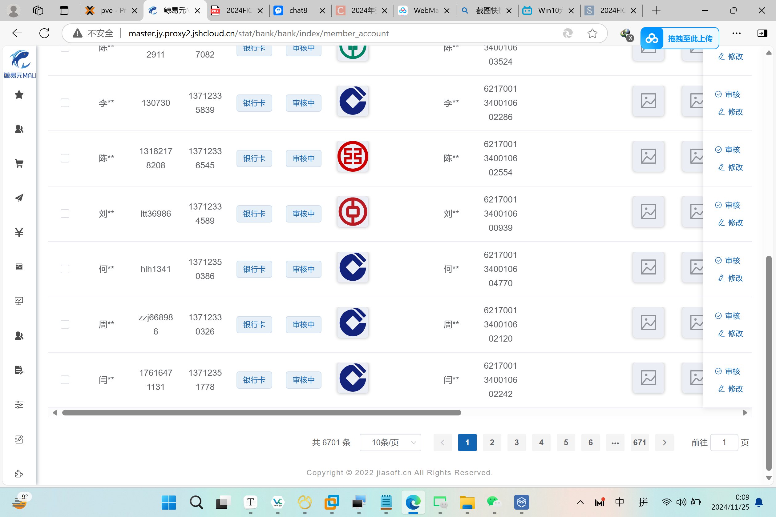 22、“鲸易元MALL管理系统”管理后台中,在提现账号管理页面中银行卡的记录数为?【答案格式:123】
