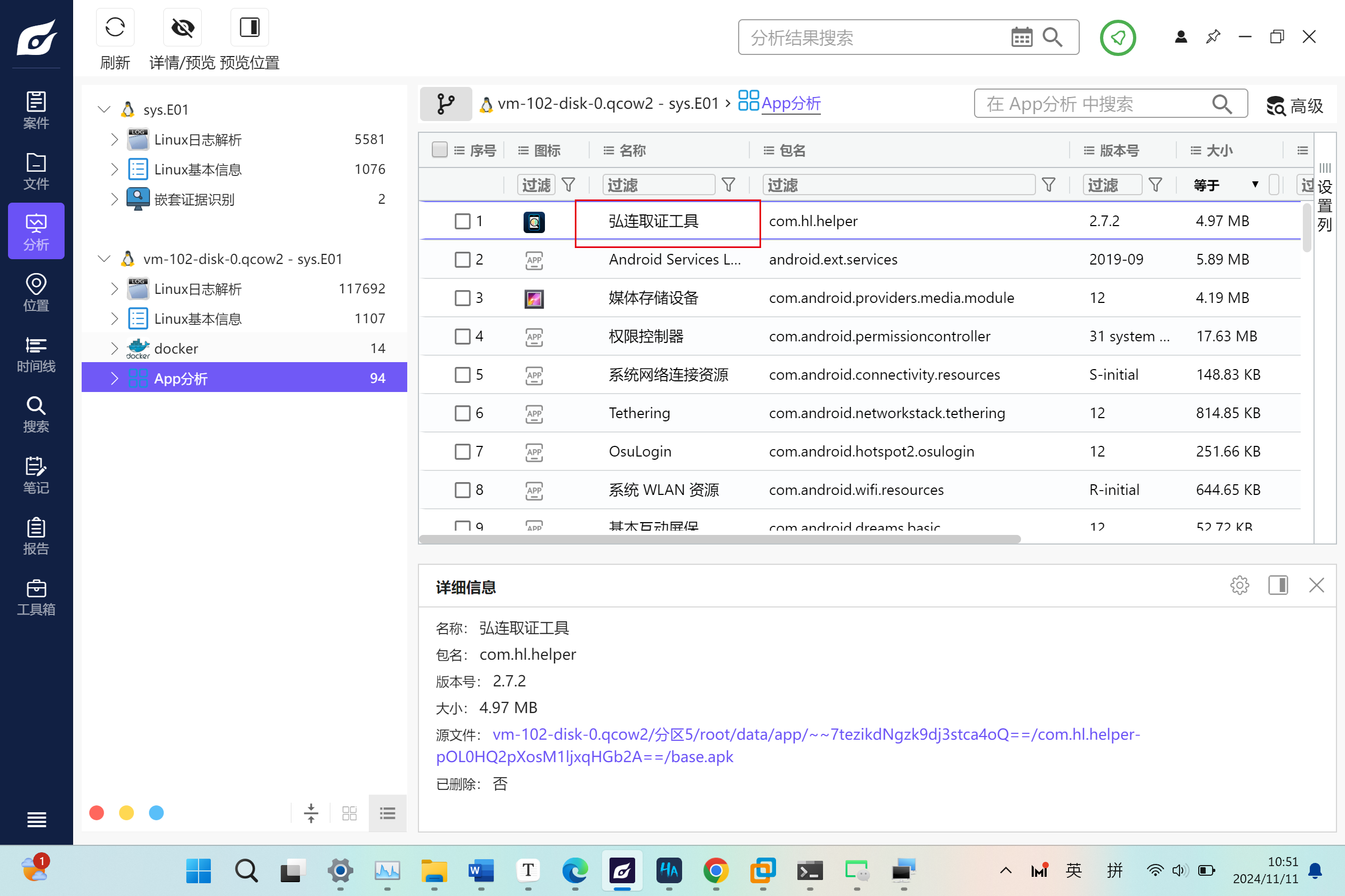 这个在node2里,node2添加为新检材后分析可以发现com.hl.helper,说明警方通过node2对手机取证,而node2的手机对应的软路由端口以2开头,选de